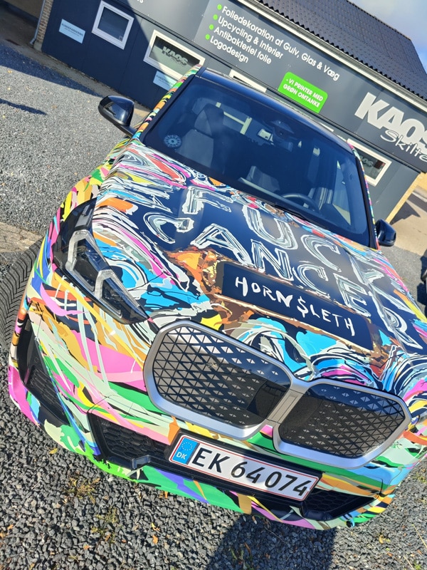 Kaos Skilte dekorerer biler i alle størrelser med folie, både som print og udskåret folie. Vi udarbejder tilbud på bildekoration med layout, der passer til din bil og dit behov.